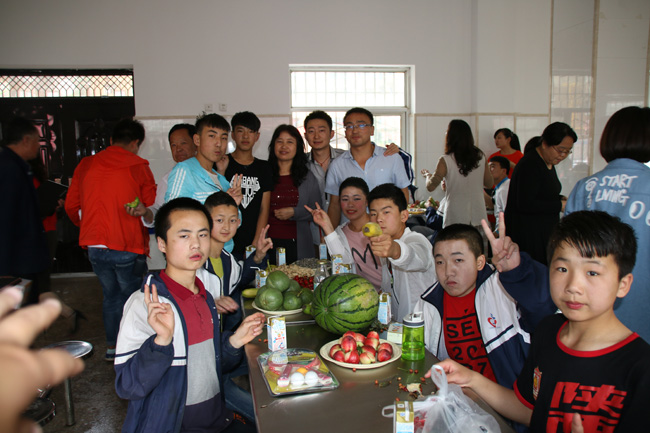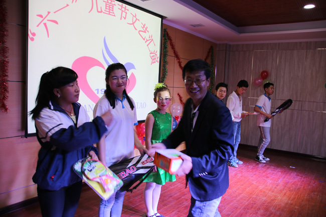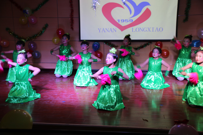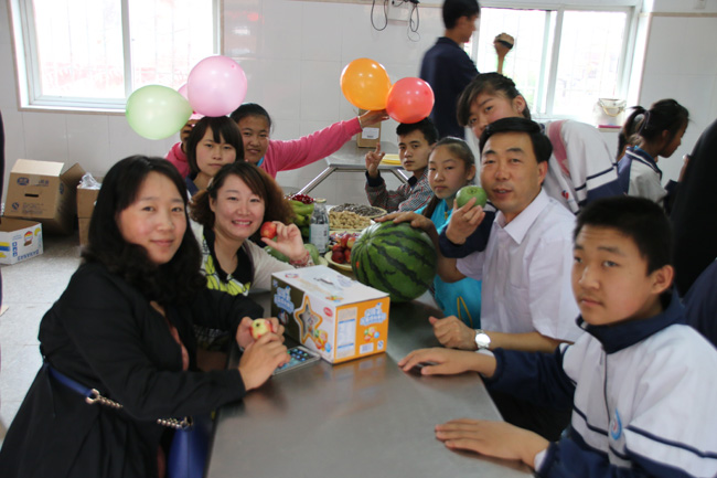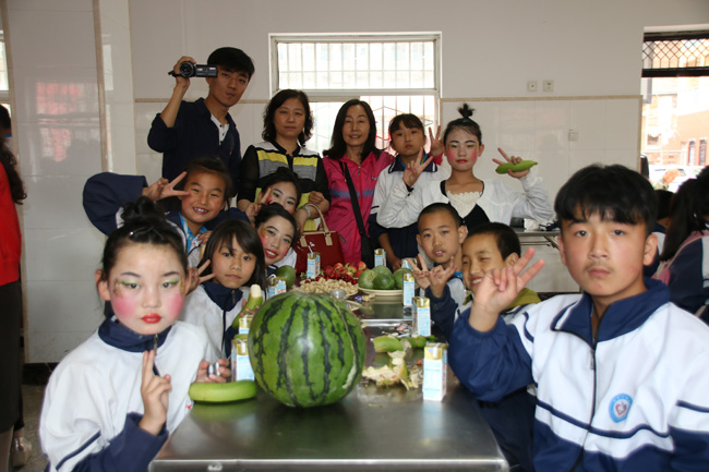 演出结束后,学校为师生精心准备了节日的礼物“开心水果”,并合影留念这一欢乐时光。