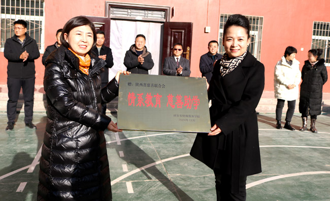 12 月 26 日下午,“慈联康桥 情满山乡”慈善助学项目于延安市特殊教育学校温情开展。陕西省慈善联合会党委委员、副会长马盼,西安曲江康桥学校执行长钟鼎国、德育主任王文彬,陕西省慈善联合会(延安)推广大使刘延飞,延安市委社会工作部副部长任永红,延安市政协副秘书长苏艳,延安市残疾人联合会副理事长樊瑛,延安市教育局督导室副主任刘冰,宝塔区政协副主席刘敏伟,延安南泥湾(集团)有限责任公司李忠伟,宝塔区戏剧家协会孙秸、张小兵、刘东、李媛芳等一行 14 人出席活动,活动由延安特校呼新艳副校长主持。